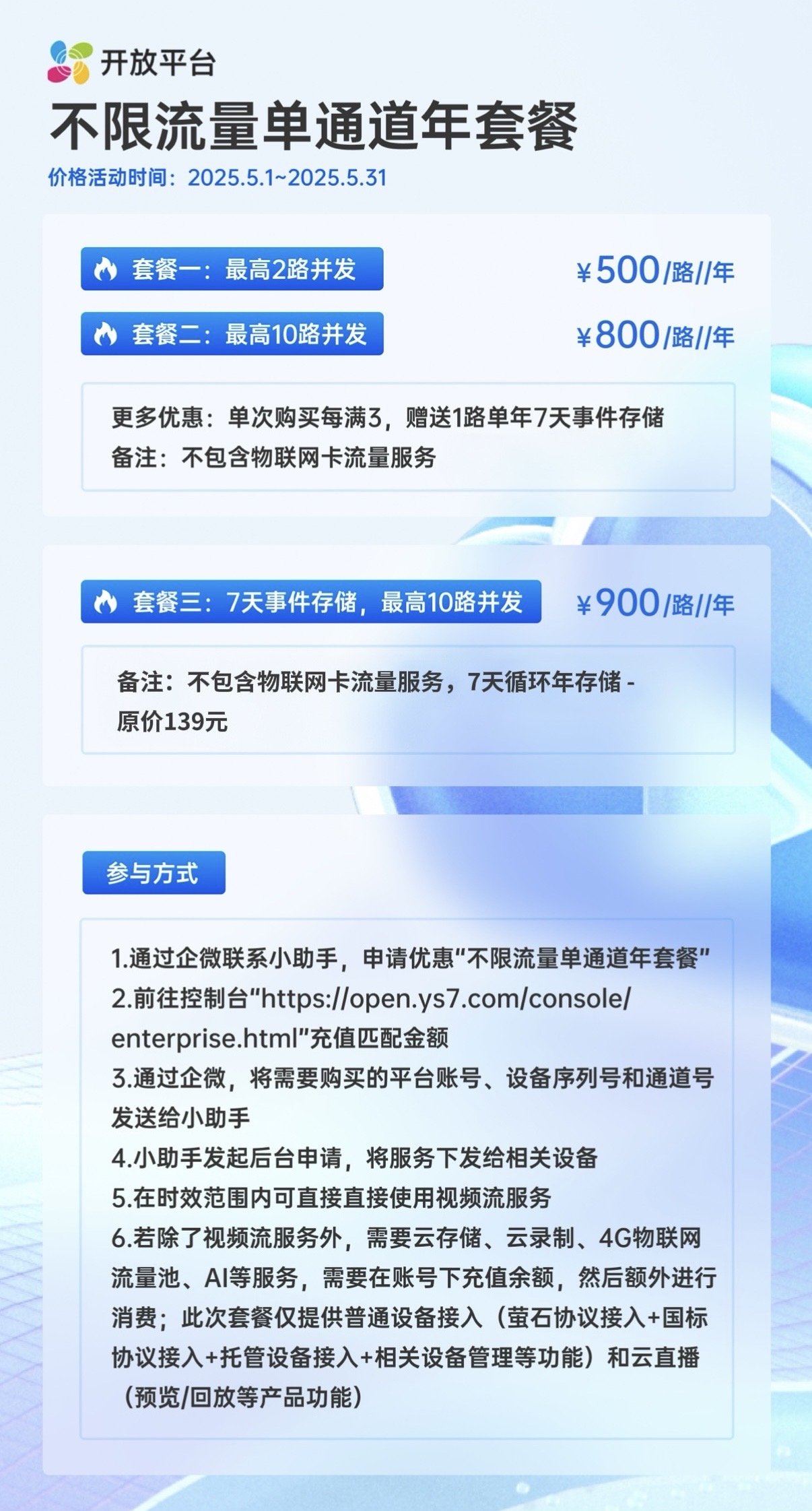 萤石云开放平台不限流量单通道年套餐